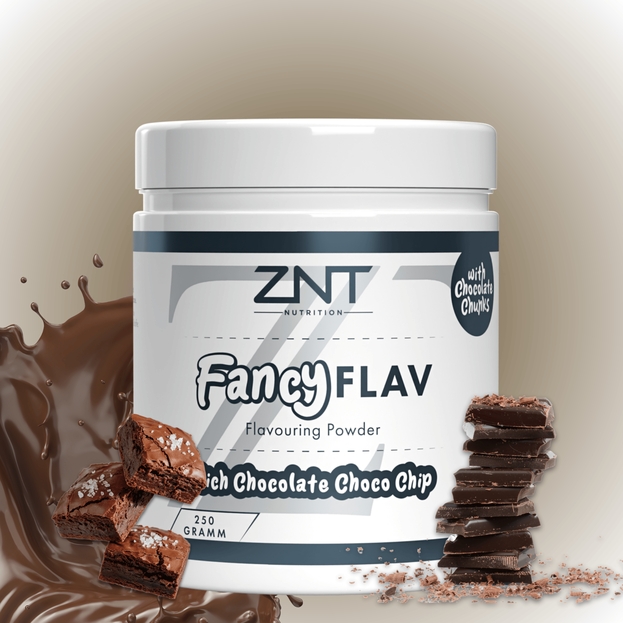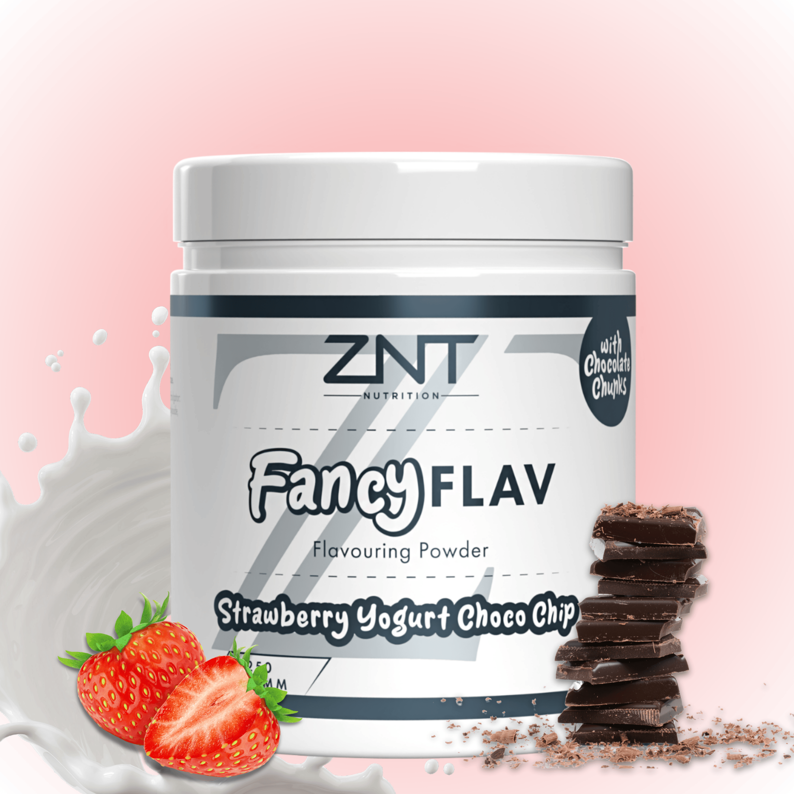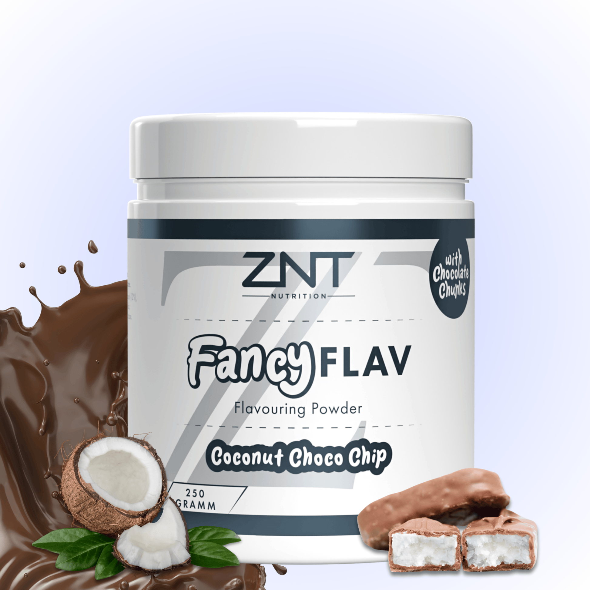 Das ZNT FANCY Flav ist ein Geschmackspulver, mit einem hervorragenden Geschmack, echten Schokostückchen und einer super Qualität. FANCY Flav von ZNT Nutrition enthält kaum Kalorien und ist für alle Trainingsziele geeignet. Quark und Skyr sowie Porridge stehen nämlich bei vielen Sportlern regelmäßig auf dem Speiseplan. Gerade diese Proteinquellen werden geschmacklich schnell fad, wo das FANCY Flav ins Spiel kommt. Das Pulver einstreuen, umrühren - fertig. Vorteil gegenüber Kakaopulver und anderen "Süßmachern" aus dem Supermarkt: FANCY Flav enthält so gut wie keine Kalorien, wenig Kohlenhydrate und fast kein Fett. Dafür enthält es das Enzym Lactase. Perfekt in Kombination mit Milchprodukten wie Quark oder Joghurt!